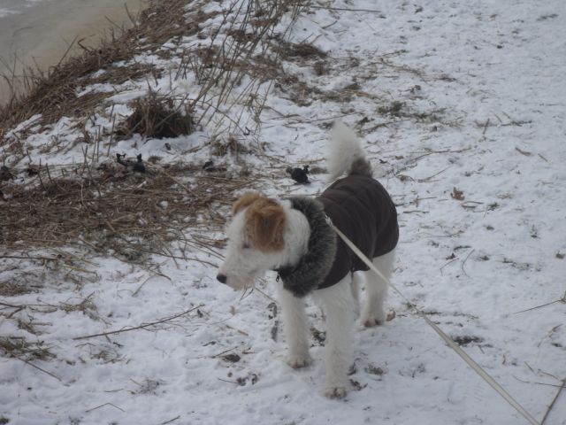 Hij is al heel erg verwend, kijk maar naar z'n nieuwe jasje, lekker warm voor in de sneeuw.